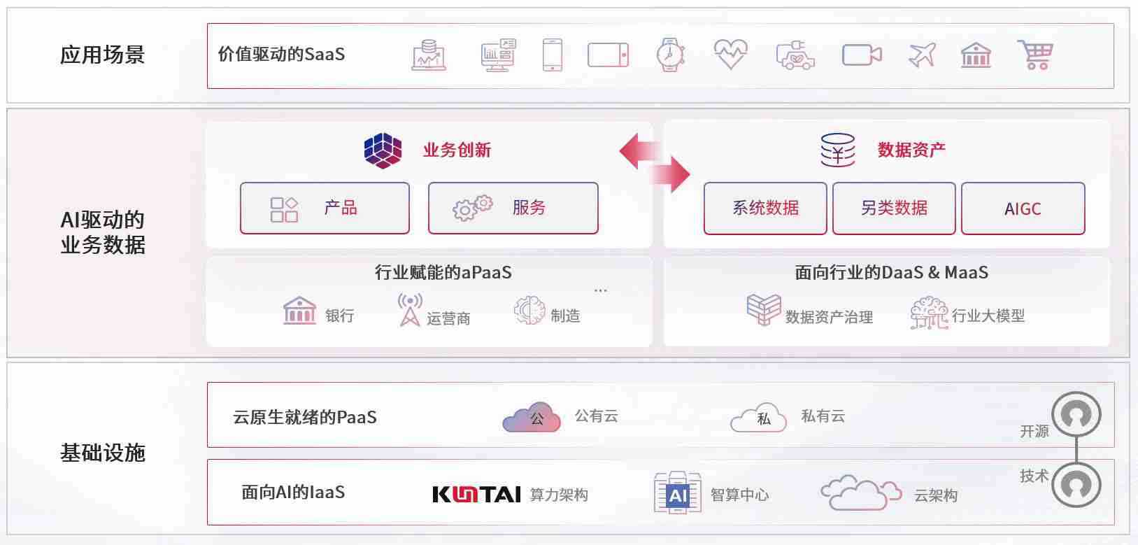 数字时代,,,,围绕企业数字化转型的关键要素,,,,234钱包数码开创性的提出数云融合战略和技术体系框架,,,着力在云原生、、、数字原生、、、AI原生和信创产业上架构产品和服务能力,,,为处在不同数字化转型阶段的快消零售、、、、汽车、、、、金融、、、医疗、、政企、、、教育、、运营商等行业客户提供泛在的敏捷IT能力和融合的数据驱动能力,,构建跨界融合创新的数字业务场景和新业务模式,,,助力企业级客户建立面向未来的核心能力和竞争优势,,全面推动社会的数字化、、智能化转型升级。。。。
